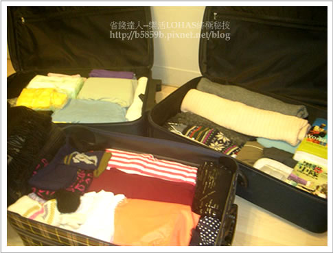 另一個更大的挑戰是,為了不讓行李超重被罰錢,要控制三個人的行李總重量在60公斤以內,厚重的衣服、生活必需用品、不帶會後悔的台灣味道食物,全都要很有技巧的擠進三個行李箱裡,常出國的朋友教我們一個可以省空間省重量的妙招,就是把衣服用捲的方式放進行李箱裡,才能放最多。